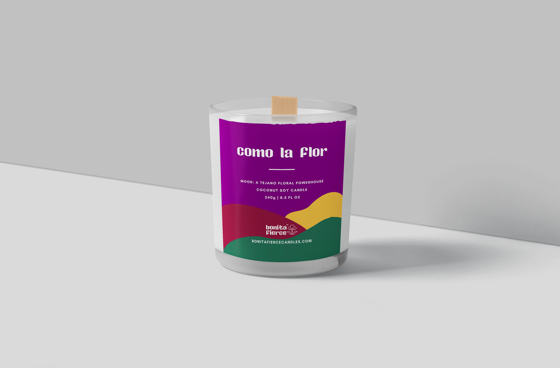 Inspired by the Queen of Tejano, Selena Quintanilla and the vibrant performance at the Astrodome. You're swept away in an exploding scent of a fresh, botanical garden, doubling down on a blended identity of lilac, rose and jasmine in a luscious bouquet. Como La Flor reminds you of the strength and persistence of Selena and the duality in navigating heritage and culture. Mood: A Tejano Floral Powerhouse Notes: Lilly of the Valley, Green Leaves, Pear, Rose, Jasmine, Lilac, Vanilla, Carnation 8.5 oz Jar with a 50-60 hour burn time Our coconut soy wax candles are vegan, clean burning, non-toxic with an FSC-certified wooden wick and a paper dust cover. We hand-pour in micro-batches in NY and Latina & Hispanic owned.