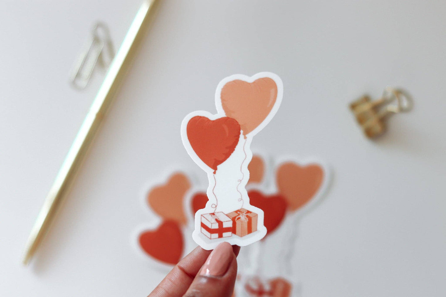 Did anyone order a gift? This heart balloon and presents matte sticker is the cutest Valentine's Day design. A great sticker to add to your stationery or included in your Valentine's gift. This waterproof stickers applies perfect to dry surfaces like journals, notebooks, water bottles, laptops and more. Details: • Size: 2(w)in x 3(h) in • Matte Finish, Waterproof • Made from high-quality vinyl and printed with vibrant colors Note: Colors may vary slightly from device screen to printed item.