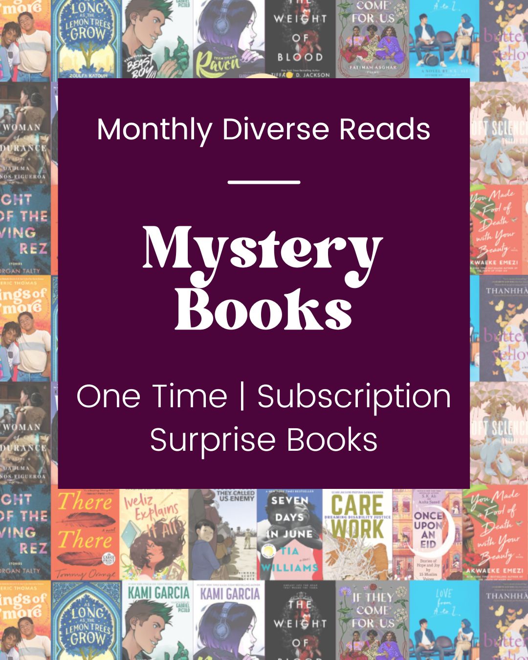 • Mystery Diverse Reads will be brand NEW books, paperback or hardcover.